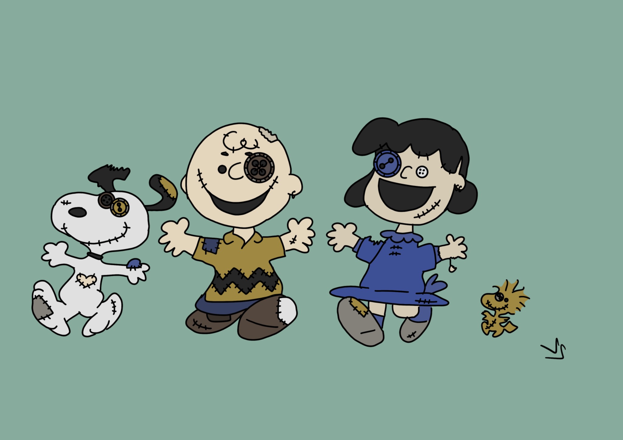 Dieses faszinierende Doodle zeigt die beliebten Charaktere aus der Welt von Snoopy und seinen Freunden in einer ganz besonderen Interpretation. Obwohl sie wie gruselige Puppen aussehen, strahlen sie dennoch Niedlichkeit, Süße und Fröhlichkeit aus.